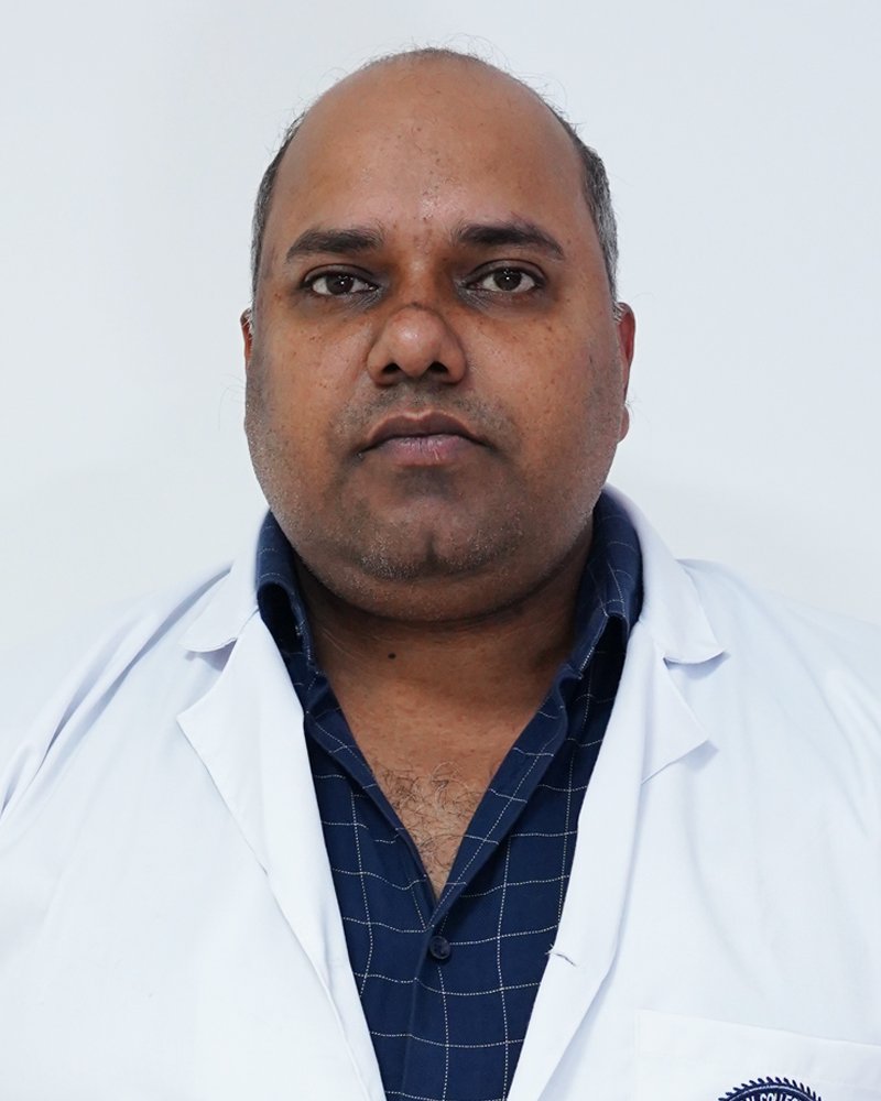 Faculty & Doctors Home faculty & doctors Academic Leadership Prof. (Dr.) Kedar Nath Singh Principal Prof. (Dr.) Nawin Kumar Medical Superintendent Prof. (Dr.) Ayaskant Sahoo Dy. Medical Superintendent Prof. (Dr.) Ashim Mishra Dean Academics Prof. (Dr.) Navin Kumar Sinha Director - Medical Administration Expert Faculty & Doctors Dr. Ashok Kumar Dubey Professor Anatony MBBS, MD Dr. Aloka Sharma Professor Anatomy MBBS, MD Dr. Md. Hassan Ali Professor Anatomy MBBS, MD Dr. Hari Mohan Prasad Sinha Professor Physiology MBBS, MD Dr. Lakshman Lal Professor Biochemistry MBBS, MD Dr. Ratan Kumar Professor Anatomy MBBS, MD Dr. Praveen Kumar Professor Community Medicine MBBS, MD Dr. Vidyapati Professor General Medicine MBBS, MD Dr. Milind Kumar Sinha Professor General Surgery MBBS, MS Dr. Anjani Bhushan Kumar Professor Paediatrics MBBS, MD Dr. Ashok Kumar Barnwal Professor Orthopaedics MBBS, MS Dr. Md. Murtaza Jamal Professor Ophthalmology MBBS, MS Dr. Vinod kumar Associate Professor Biochemistry MBBS, MD Dr. Devendra Prasad Associate Professor Pathology MBBS, MD Dr. Md. Waseem Uddin Associate Professor Paediatrics MBBS, MD Dr. Abhay Harsh Kerketta Associate Professor Orthopaedics MBBS, MS Dr. Satarupa Das Assistant Professor Physiology MBBS, MD Dr. Jhuma Das Assistant Professor Biochemistry MBBS, MD Dr. Kavya Varshney Assistant Professor Pathology MBBS, MD Dr. Saket Kumar Assistant Professor Pathology MBBS, MD Dr. Sampreet Kaur Awal Assistant Professor Microbiology MBBS, MD Dr. Akram Minhaz Assistant Professor Community Medicine MBBS, MD Dr. Anupama Abhilasha Murmu Assistant Professor Community Medicine MBBS, MD Dr. Govind N Sharma Assistant Professor General Medicine MBBS, MD Dr. Ajay Kumar Agarwal Assistant Professor General Surgery MBBS, MS Dr. Ashutosh Anand Assistant Professor General Surgery MBBS, MS Dr. Md. Ashraf Ali Assistant Professor General Surgery MBBS, MS Dr. Mohan Kant Thakur Assistant Professor General Surgery MBBS, MS Dr. Soumyodhriti Ghosh Assistant Professor General Surgery MBBS, MS Dr. Tanmay Prasad Assistant Professor General Surgery MBBD, MS Dr. Shiv Shankar Jha Assistant Professor Paediatrics MBBS, MD Dr. Soni Singh Assistant Professor Paediatrics MBBS, MD Dr. Anu Priya Assistant Professor Obstetrics & Gynaecology MBBS, MS Dr. Saba Ghaffari Assistant Professor Obstetrics & Gynaecology MBBS, MS Dr. Sampada Assistant Professor Obstetrics & Gynaecology MBBS, MS Dr. Shivya Jha Assistant Professor Obstetrics & Gynaecology MBBS, MS Dr. Purnima Singh Assistant Professor Obstetrics & Gynaecology MBBS, MS Dr. Manish Kumar Singh Assistant Professor Orthopaedics MBBS, MS Dr. Rohit Topno Assistant Professor Orthopaedics MBBS, MS Dr. Santu Maji Assistant Professor Oto-Rhino-Laryngology MBBS, MS Dr. Shiv Prakash Pandey Assistant Professor Oto-Rhino-Laryngology MBBS, MS Dr. Shweta Patil Assistant Professor Ophthalmology MBBS, MS Dr. Abhishek Jaiswal Assistant Professor Radiology/ Radio Diagnosis MBBS, MD Dr. Devanshu Sinha Assistant Professor Dentistry BDS, MDS Dr. Banashree Majumdar Assistant Professor Dermatology MBBS, MD View More →